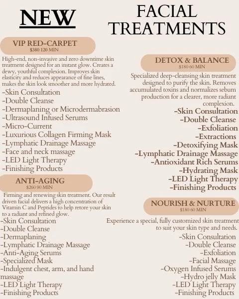 A variety of facials & skin treatments targeted and customized to address all skin concerns, needs, and improve overall skin condition.